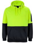 80% Polyester for durability, 20% Cotton for comfort,280gsm Fleece Fabric,Contrast panel at body and sleeves,Rib basque sleeve cuffs and bottom hem for improved durability,Kangaroo pocket on C.F and pen pocket on sleeve,Complies with AS/NZS 1906.4:2010 and AS/NZS 4602.1:2011 Day Only,Hood with drawcord,Easy care fabric